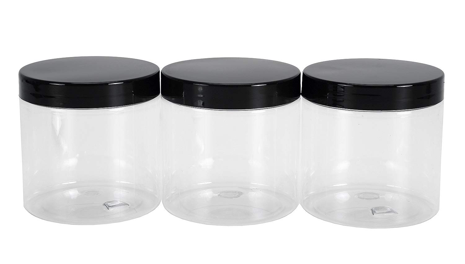 - Included 12 pack Clear Plastic Jars with black lids, each jar measures 3.6 x 3.6 inch, capacity 16 oz. Do not wash in dishwasher.