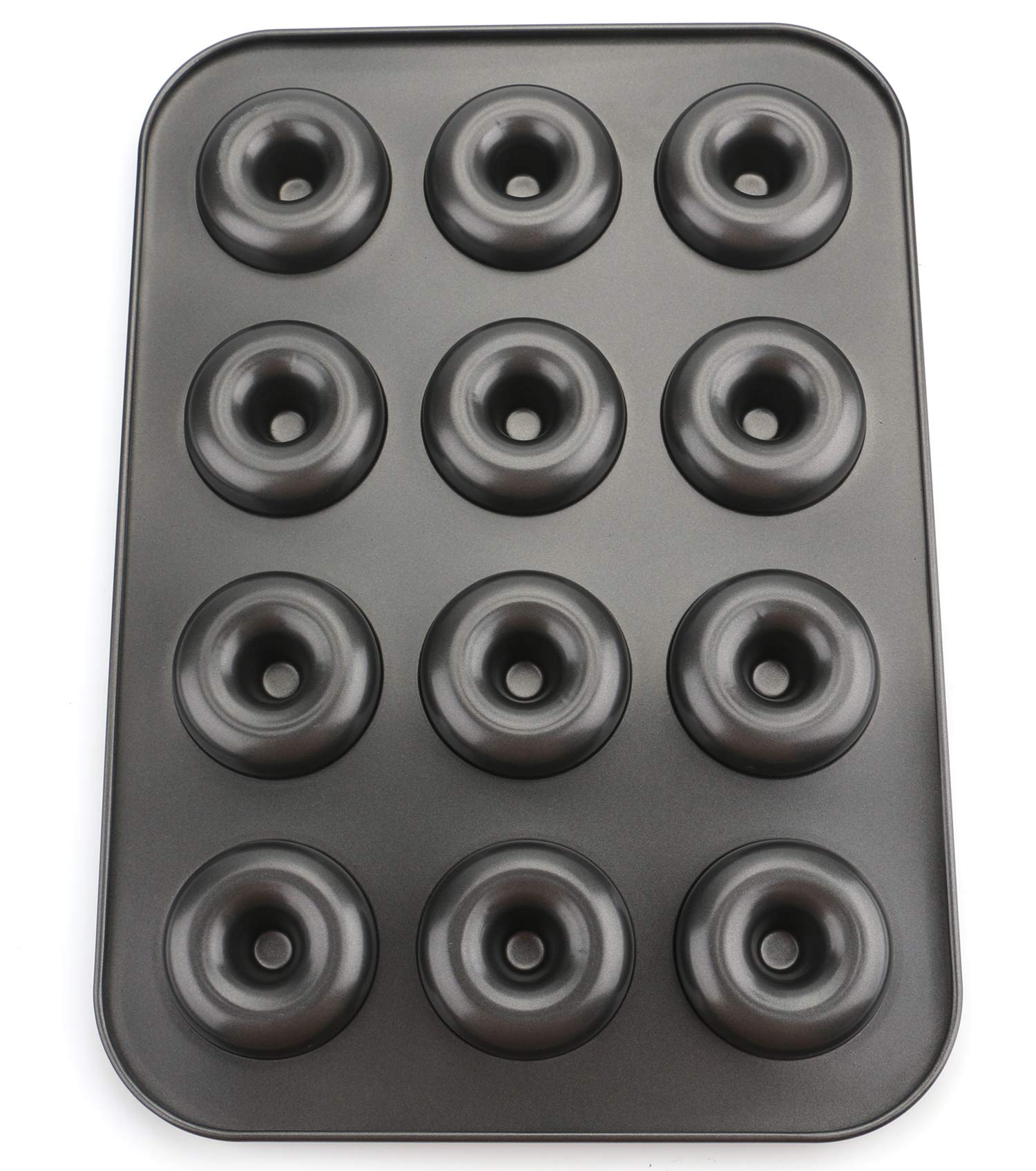 Lawei 2 Pack 12-Cavity Non-stick Donut Pan, Carbon Steel Donut Baking Pan for Muffin, Cake, Dessert, Mini Bagel Mold Donut Trays for Oven, Microwave, Freezer Safe