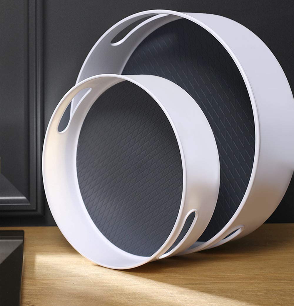 - The surface of lazy susan was made of durable plastic and silicone.The ball bearings on the base are made of stainless steel, so it can prevent rust